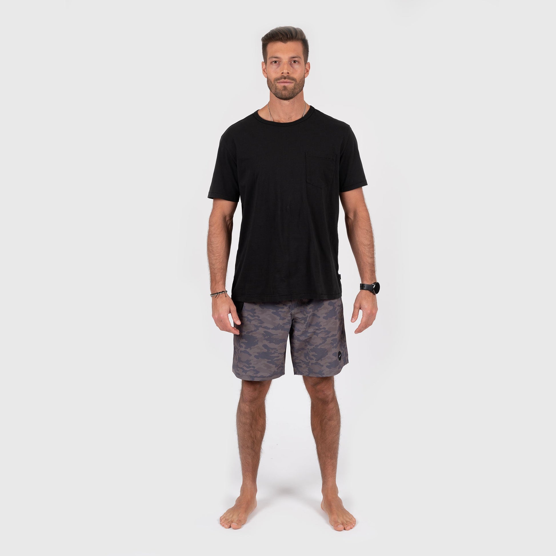 Traje baño con amarra superior, bolsillo lateral Negro y bolsillo trasero con cierre posterior. Encuéntralo en su versión clásico y en estampado para elevar tu look este verano.