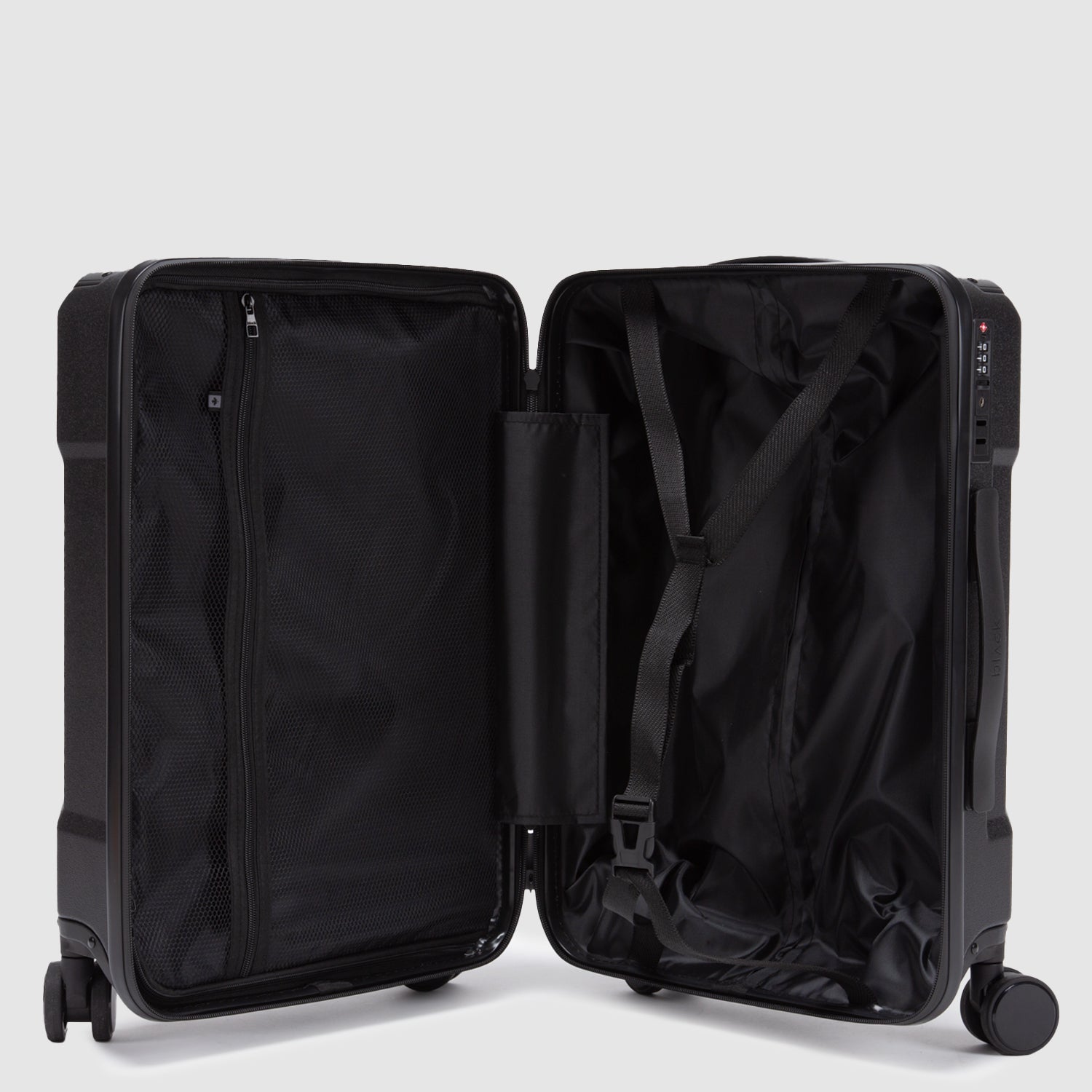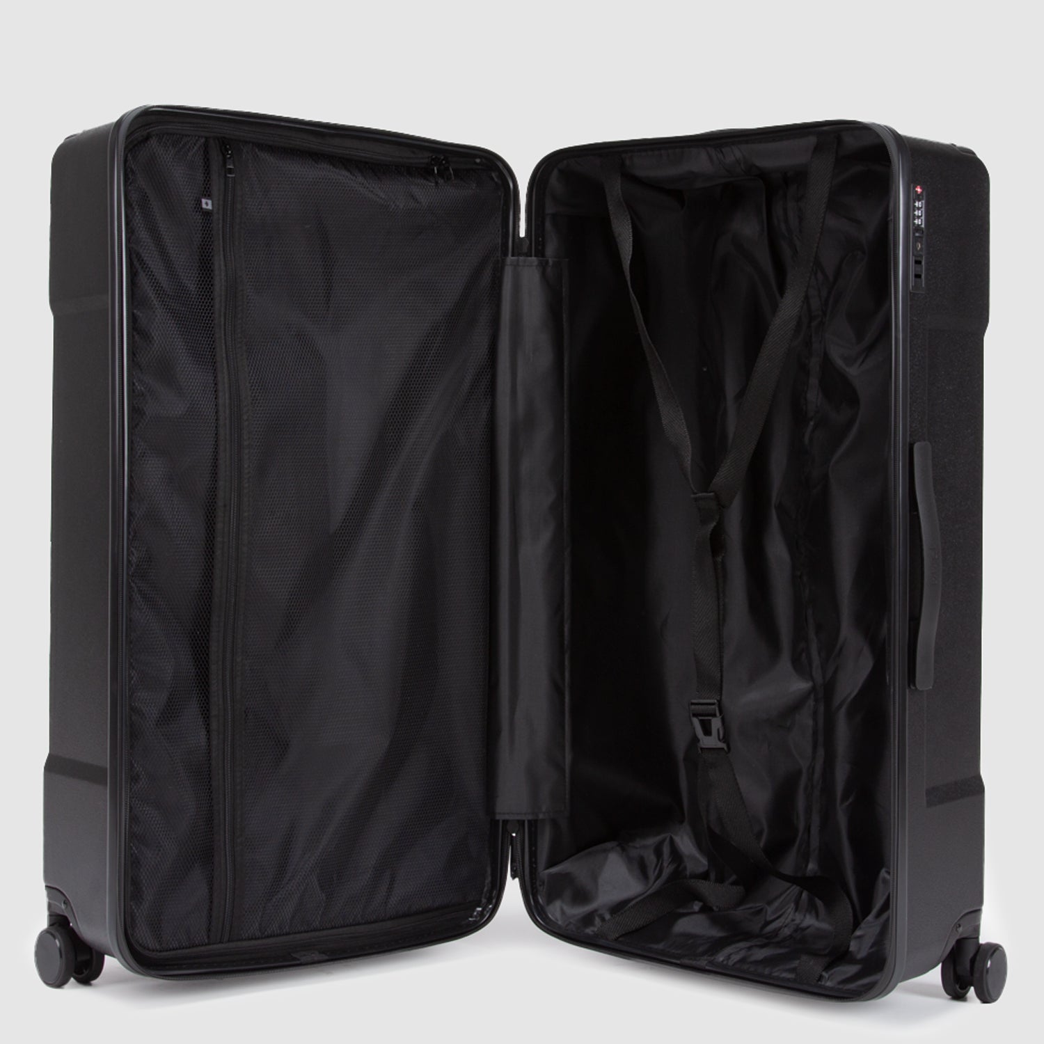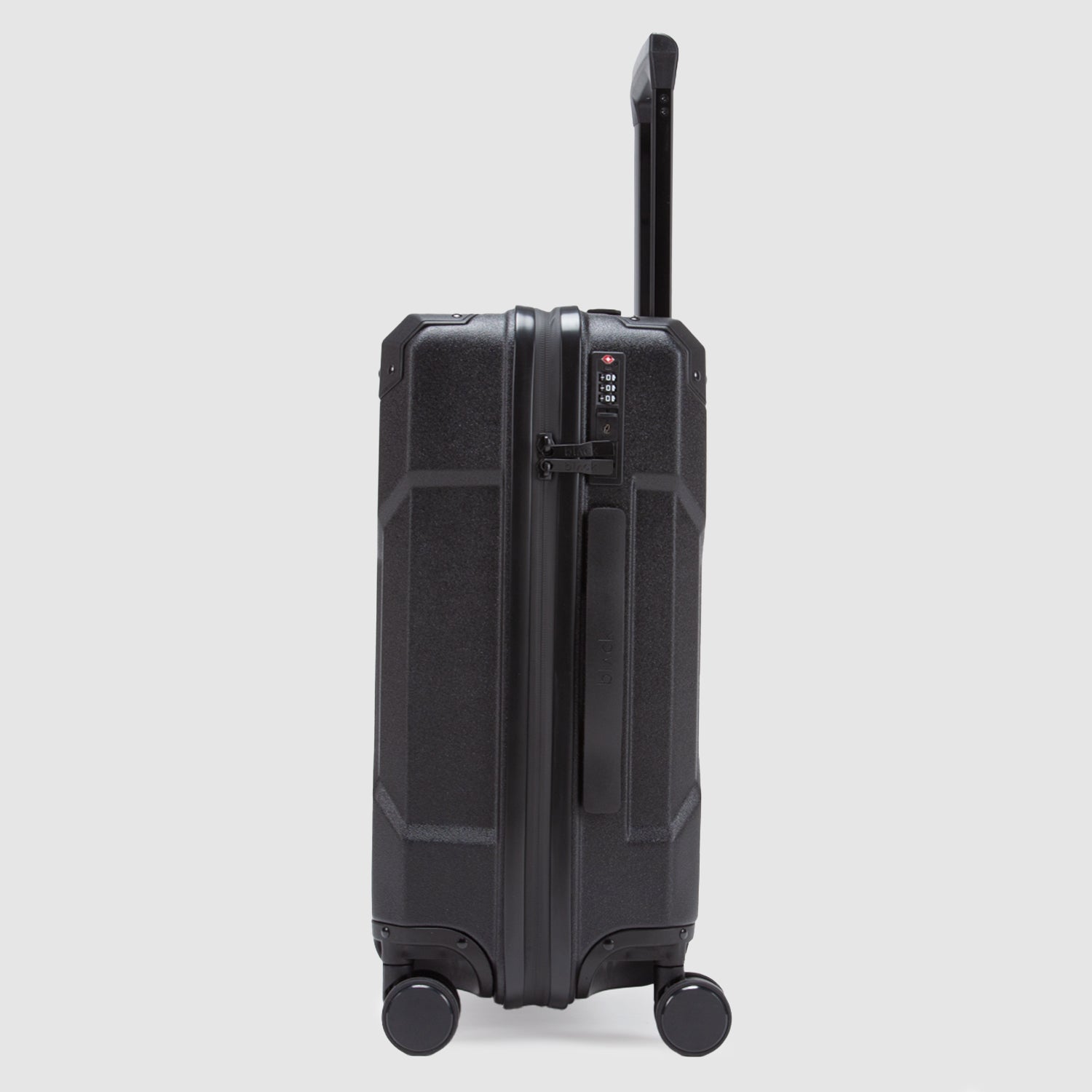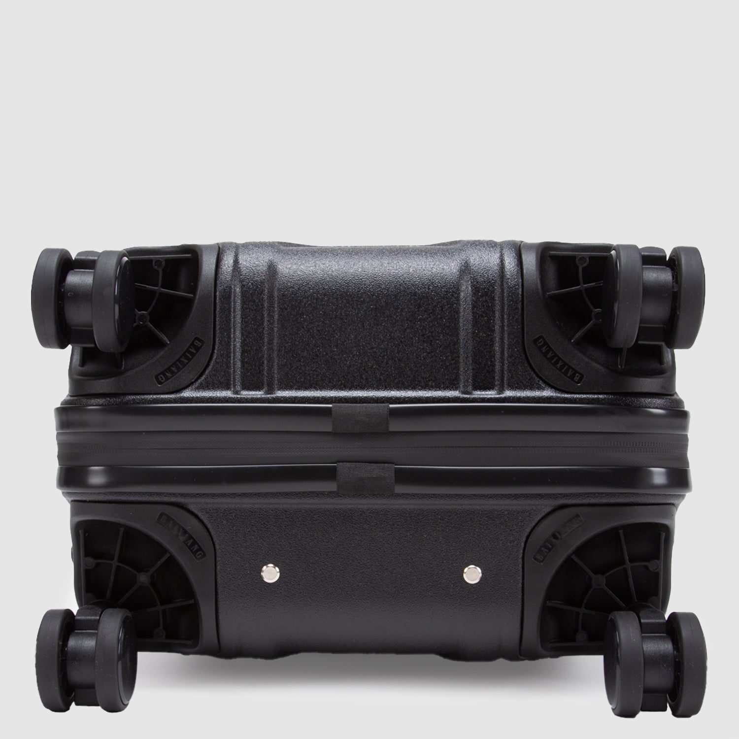 Maleta de viaje ultraliviana, resistente y rígida con cuatro ruedas de giro 360° que permiten un fácil y cómodo desplazamiento. Su asa telescópica permite ajustarla a distintas alturas. Este modelo cuenta de 2 tamaños, Small (cabina) y L (tamaño grande). Su interior tiene un organizador de malla para mantener el orden.