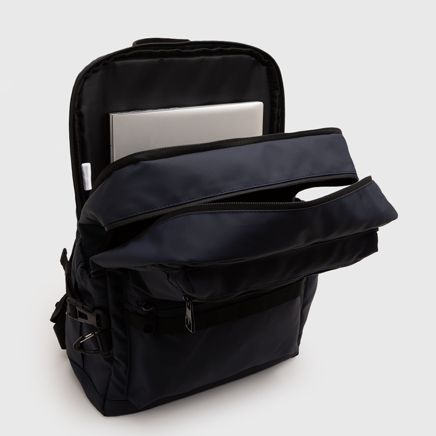 Mochila COLLINS PRO, ideal para el trabajo, universidad y viajes. Llena de detalles bien pensados y un almacenamiento inteligente: tiene dos compartimentos principales, uno acolchado para tu laptop y tablet, otro amplio con compartimentos organizadores y mallas externas para guardar tu botella y accesorios de manera rápida y práctica. No importa lo que necesites para tu viaje o para tu día, la mochila Collins es tu elección. Disponible en color Black y Navy.