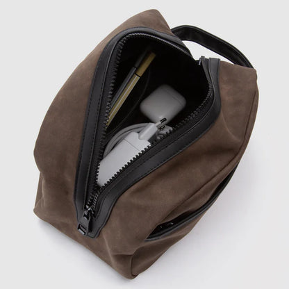 El Neceser Austin es el equilibrio perfecto entre estilo y funcionalidad. Con su acabado efecto cuero, aporta un look sofisticado y atemporal, ideal para acompañarte en cualquier viaje o en el día a día. Con 4.4 litros de capacidad, ofrece un bolsillo principal con cierre y dos bolsillos laterales con cierre, permitiéndote organizar tus esenciales de manera práctica y accesible. Un accesorio indispensable para quienes valoran el orden sin sacrificar el diseño.