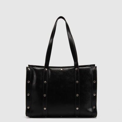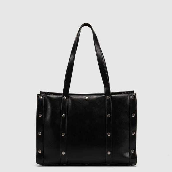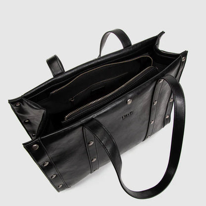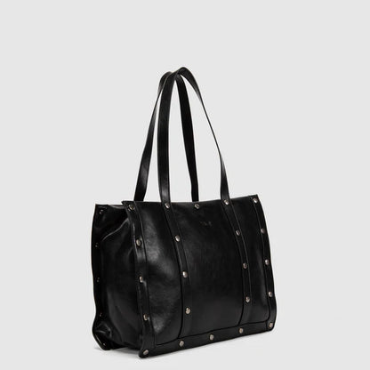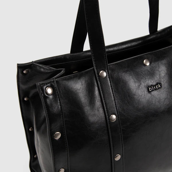 TOTE TUCKER es una cartera estilosa de hombro tipo tote que destaca por su diseño con tachas, aportando un look moderno y con actitud. Full ondera y con personalidad, es ideal para llevarla de día o de noche y acompañarte a todas partes. Un accesorio con carácter, pensado para quienes buscan estilo Black!