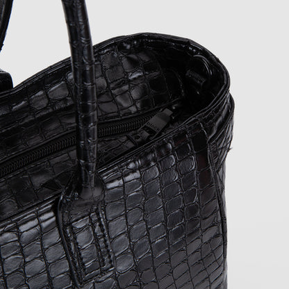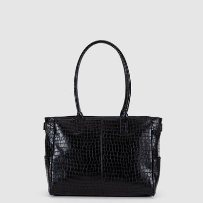 Tote Caimán - Diseñada para quienes buscan espacio y estilo en una sola pieza. Con una capacidad de 16,5 L, esta tote ofrece amplitud sin perder elegancia. Su exterior texturado tipo caimán y acabado repelente al agua la convierten en una opción sofisticada y funcional. Incluye compartimiento principal con cierre y bolsillos internos para organizar tus pertenencias. Las asas reforzadas y correa ajustable permiten llevarla al hombro o cruzada con total comodidad. Un accesorio pensado para quienes valoran la funcionalidad sin perder el estilo.