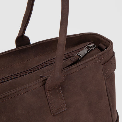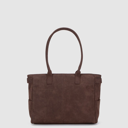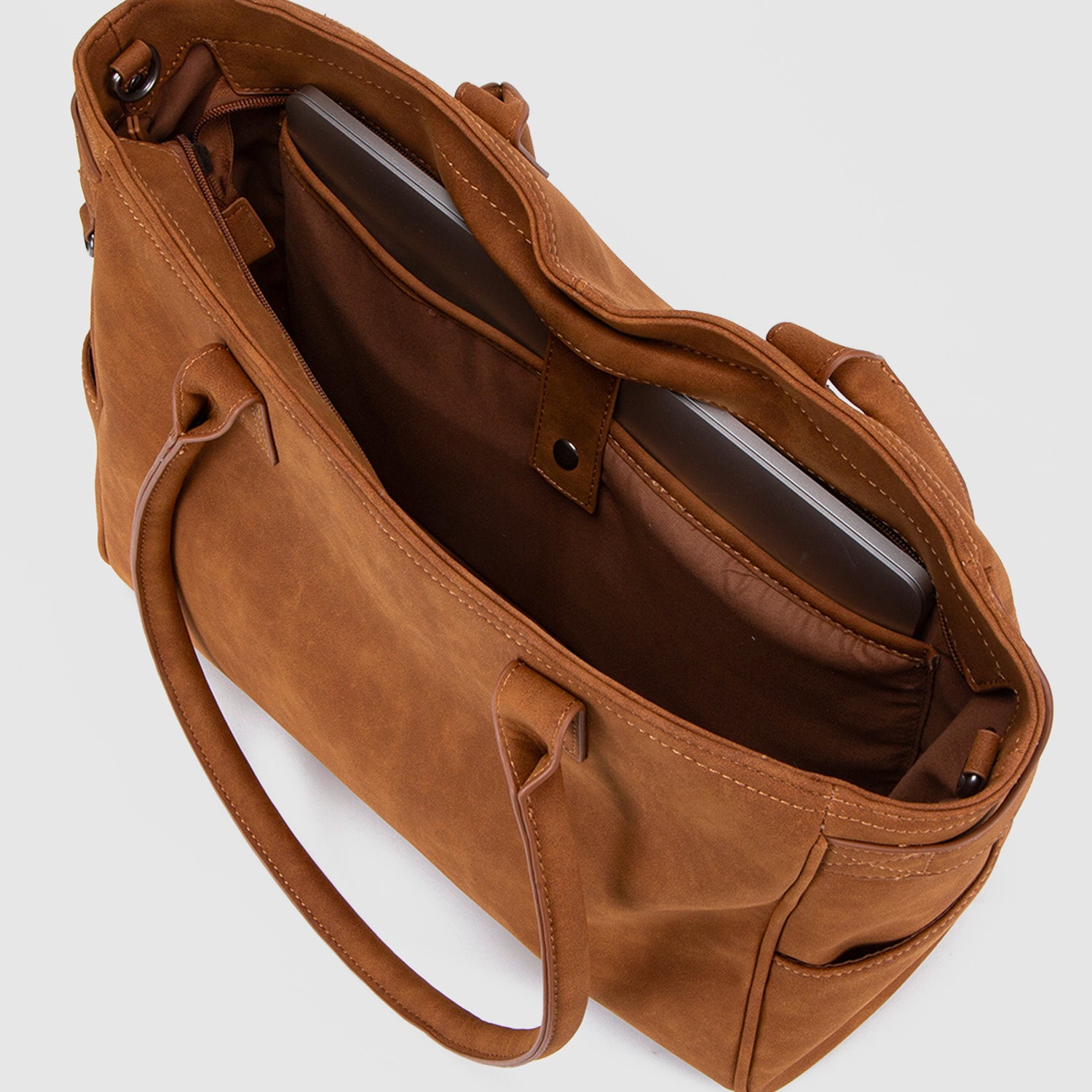 Tote Suede –Con una capacidad de 16,5 L, esta tote es el equilibrio perfecto entre funcionalidad y estilo. Su material tipo gamuza aporta un toque sofisticado y suave, ideal para complementar tus looks de todos los días. El compartimiento principal con cierre asegura tus pertenencias, mientras que sus asas resistentes y correa ajustable ofrecen comodidad y versatilidad para llevarla al hombro o cruzada. Un accesorio pensado para quienes valoran la practicidad con un sello de elegancia.